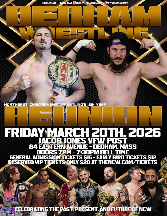Northeast Championship Wrestling’s 2026 Season kicks off with the Road to Thirty on Friday March 20th live in Dedham, MA!Don’t miss out on the NCW experience live!