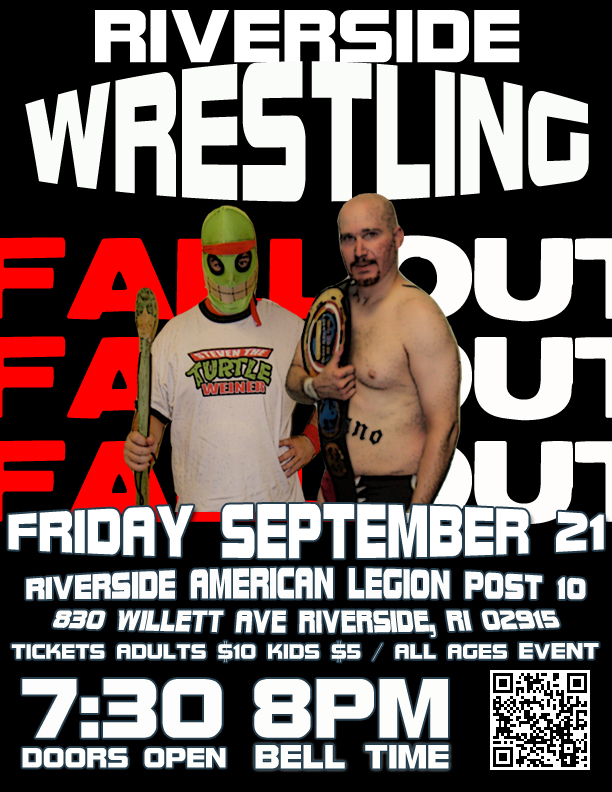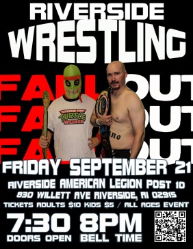 RIVERSIDE- On Friday night September 21st Northeast Championship Wrestling continues our 2012 wrestling season when we return to American Legion Post #10 in Riverside, RI for our annual FALLOUT spectacular. Competing in a seasonal format from February through November, NCW presents a unique night of entertainment for fans wherever we go, bringing forth our larger than life characters, dynamic storylines, and incredible athleticism all while providing a unique experience for fans of all ages.