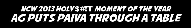 It was close, but the Holy $#!T Moment of 2013 saw “All Good” Anthony Greene take “The Showoff” Mike Paiva off the top rope and through the merchandise table, capping off their amazing Last Man Standing Match at NCW SummersSlam. Moments after this epic move saw both men lying on the mat while the Norwood Elks Lodge buzzed with anticipation, with AG making it to his feet beating the ten count and giving him the win. While REDD WOOD teaming was one helluva fun moment, the Last Man Standing Match left everyone with just one thought– “HOLY S#!T!!”