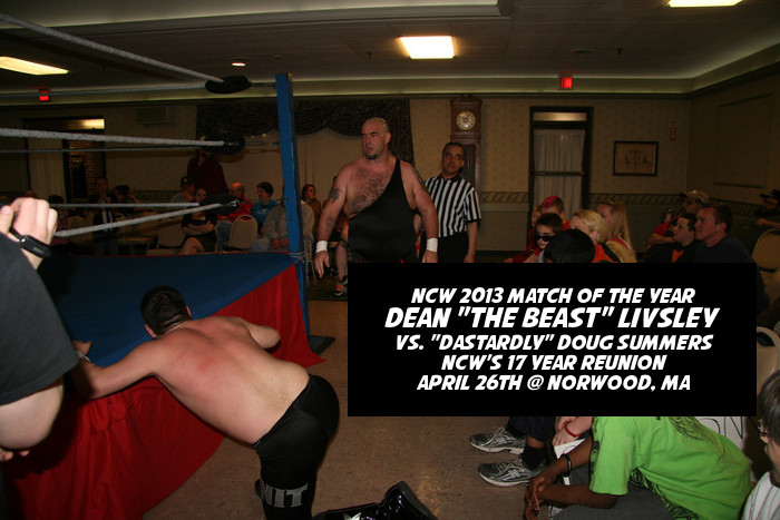 This isn’t the first time Dean “The Beast” Livsley has won Match of the Year. In fact, Dean has won the Match of the Year two previous times in 2009 and 2010 (both against David Loomis). It was the 2010 Match of the Year where Livsley wrestled what he believed to be his final match, losing a Retirement Match after failing to win the NCW Heavyweight Championship. From there Dean became NCW Commissioner, and never looked back on his wrestling career. He was content to being a former Heavyweight Champion and one of NCW’s most beloved favorites.