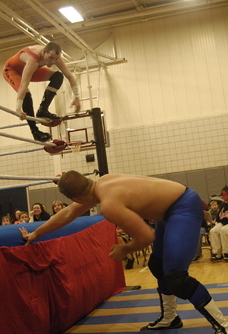 “The Average Guy” Timothy Pittman prepares to launch from the top down to Alex Chamberlain.