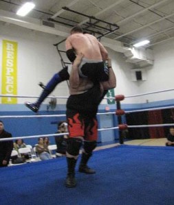 Dean Livsley powerbombs David Loomis in the NCW Championship Scramble.