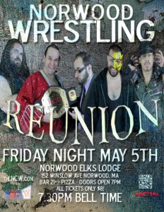 NORWOOD– On Friday night May 5th Northeast Championship Wrestling continues our 2017 Season when we return to the Norwood Lodge of Elks (152 Winslow Avenue) in Norwood, Massachusetts for Cinco De Mayo when NCW celebrates twenty years of wrestling action with REUNION!