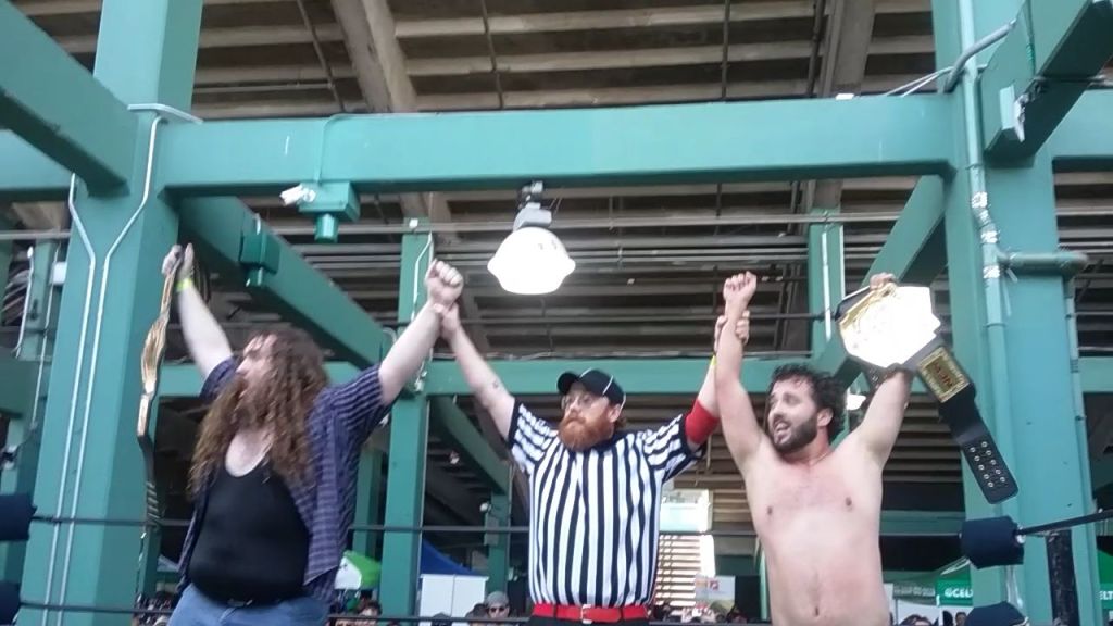 NEW CHAMPIONS CROWNED AT FENWAY PARK! In the NCW Showcase Match at El Mundo’s Family Festival in Boston MA “The Showoff” Mike Paiva and The Lumberjake defeated The Maine State Posse to win the NCW Tag Team Championship when Lumberjake sent Mike Paiva crashing down on top of DangerKid for the win!