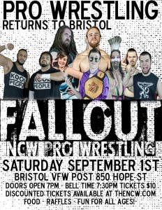 BRISTOL, RI—On Saturday night September 1st Northeast Championship Wrestling excitedly returns to Rhode Island for the first time this Season when NCW FALLOUT comes to the Almeida VFW Post (850 Hope Street) in Bristol, RI. Doors open at 7pm with a 7:30pm bell time. All tickets will be $10 at the door, however online discounted tickets can be purchased exclusively at http://theNCW.com/tickets!