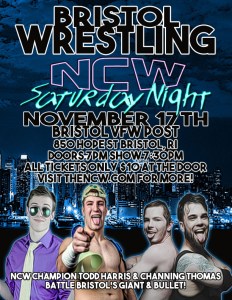 The Bristol VFW Post is located at 850 Hope Street in Bristol, RI. For more information on Northeast Championship Wrestling visit theNCW.com, like us on Facebook at www.facebook.com/NCWwrestling, and follow us on Twitter @theNCWtweets!