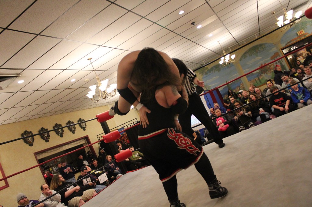 Before the show could begin Shane Daly and Loren Petisce were interrupted by an irate Lumberjake, carrying a steel chair and wanting a piece of “Revolution” Chris Venom right away. President Dean “The Beast” Livsley informed Jake that Venom wasn’t in the building yet, but would get his promised match later.