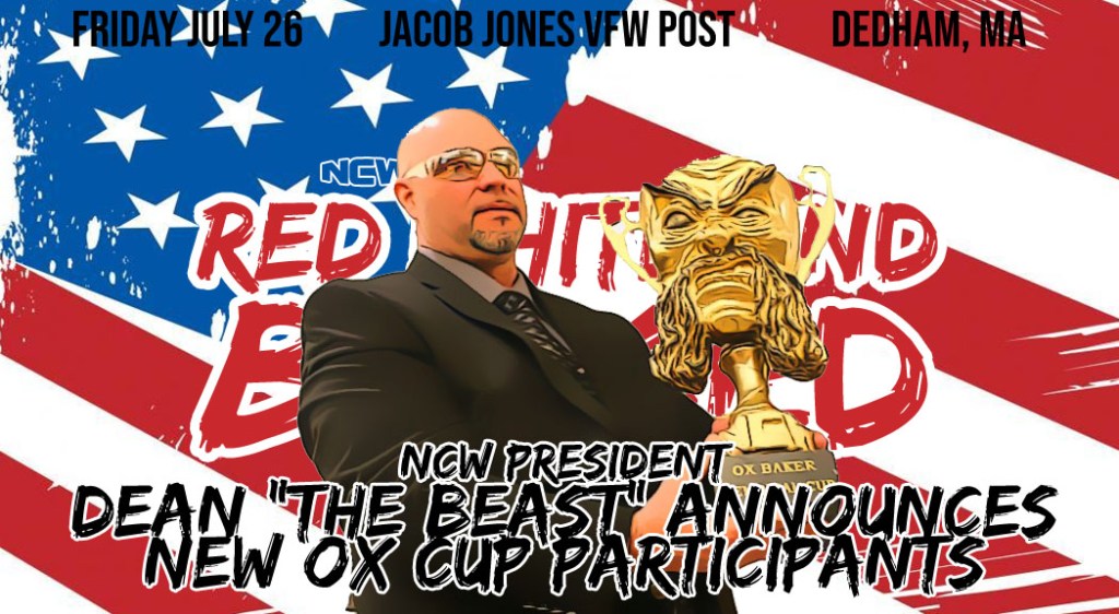 With the NCW Ox Baker Memorial Cup back in possession of NCW President Dean “The Beast” Livsley the boss will be prepared to make an official announcement July 26th in Dedham to announce new contenders for the Ox Baker Memorial Cup, and with both NCW Heavyweight Champion Brett Ryan Gosselin and New England Champion “The Ace” Mike Montero antsy about potential challengers coming after their respective titles following their auspicious title victories at Aftermath there’s a whole slew of worthy challengers looking to get the Cup and challenge back for both title belts.