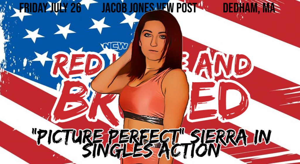 After getting the whooping of her life at NCW Aftermath against “The Suplex Sweetheart” Isana the 2018 Women’s Wrestler of the Year “Picture Perfect” Sierra returns to Dedham a beaten woman and forced to compete in singles action against new talent only despite her protests of wanting the night off. Can Sierra rebound after such a devastating loss at Aftermath? We’ll find out July 26th at Red, White, & Bruised!