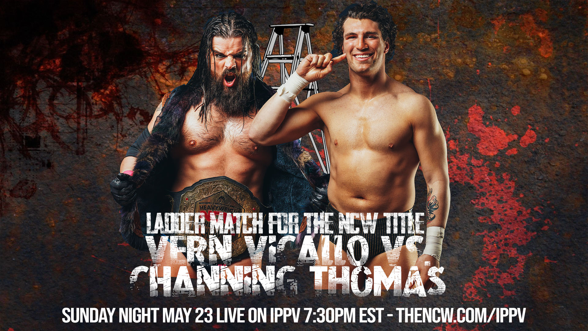 This Sunday night Northeast Championship Wrestling’s 2021 Season continues in the virtual environment with NCW SHOOTS AND LADDERS live on iPPV with NCW Heavyweight Champion “DELICIOUSLY VICIOUS” VERN VICALLO defends the NCW title against “THE NATURAL” CHANNING THOMAS in a Ladder Match!