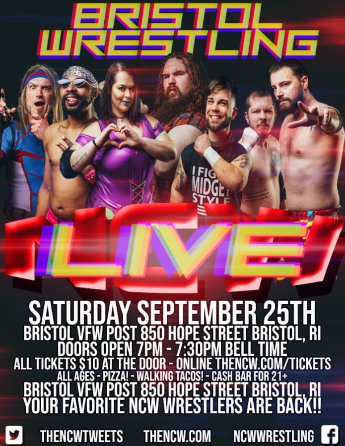 BRISTOL, RI— On Saturday night September 25th Northeast Championship Wrestling and the 2021 Season finally makes its return to the Almeida VFW Post (850 Hope Street Bristol, Rhode Island) for NCW LIVE, welcoming NCW fans back to the VFW for wrestling action for the first time since November 2019.