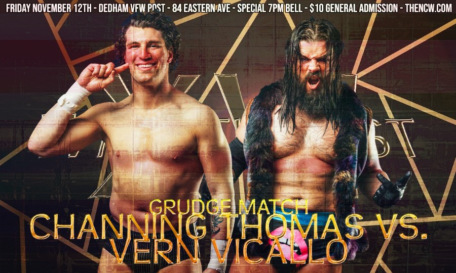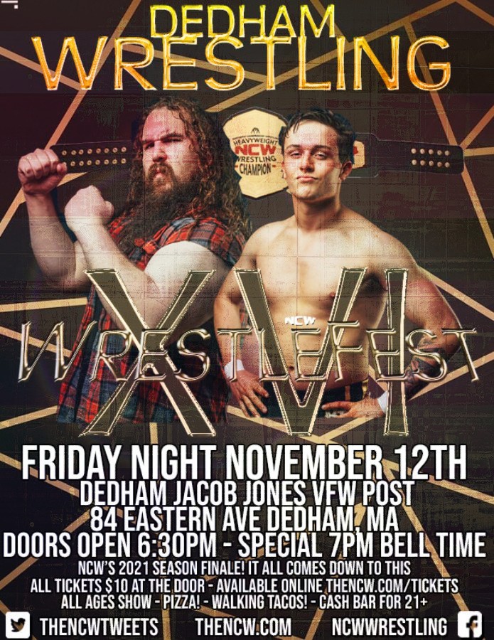 DEDHAM— On Friday night November 12th Northeast Championship Wrestling and NCW’s 2021 Season returns to the Jacob Jones VFW Post in Dedham, Massachusetts (84 Eastern Avenue) for the incredible Season Finale NCW WrestleFest XVI featuring the reigning Heavyweight Champion THE LUMBERJAKE defending the NCW title against the #1 Contender “THE VICTORIOUS” BRETT RYAN GOSSELIN!