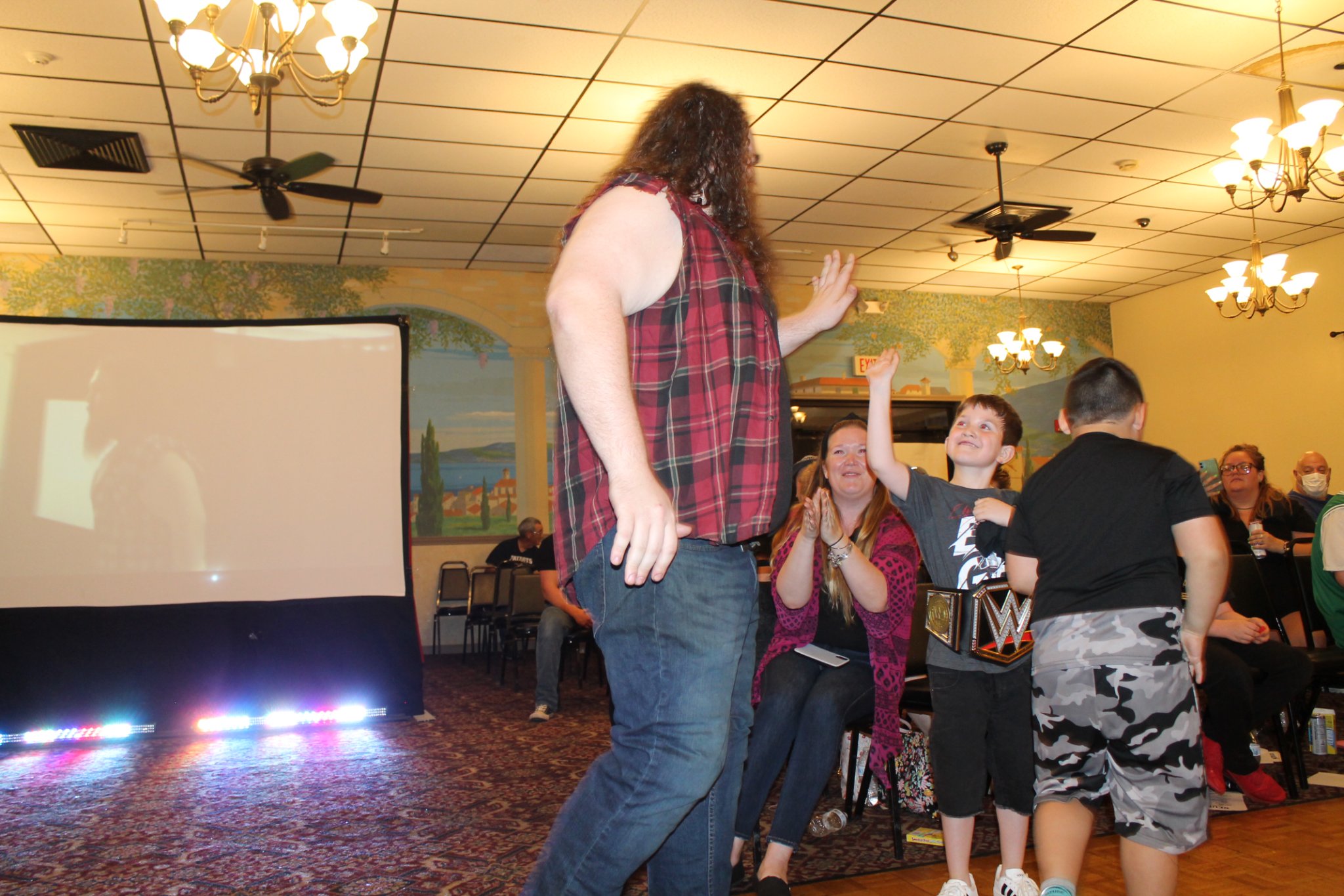 NCW founder John Casey came out to welcome the NCW President and former Heavyweight Champion Dean “The Beast” Livsley for the NCW 2022 Honors celebration, thanking “The Beast” for his years of service in NCW.