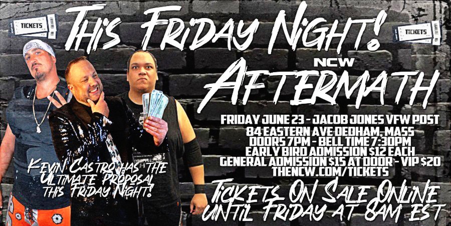 This Friday night June 23rd Northeast Championship Wrestling returns to Dedham, MA and the Dedham VFW Post for the Aftermath of REUNION! Tickets are on sale now at thencw.com/tickets!