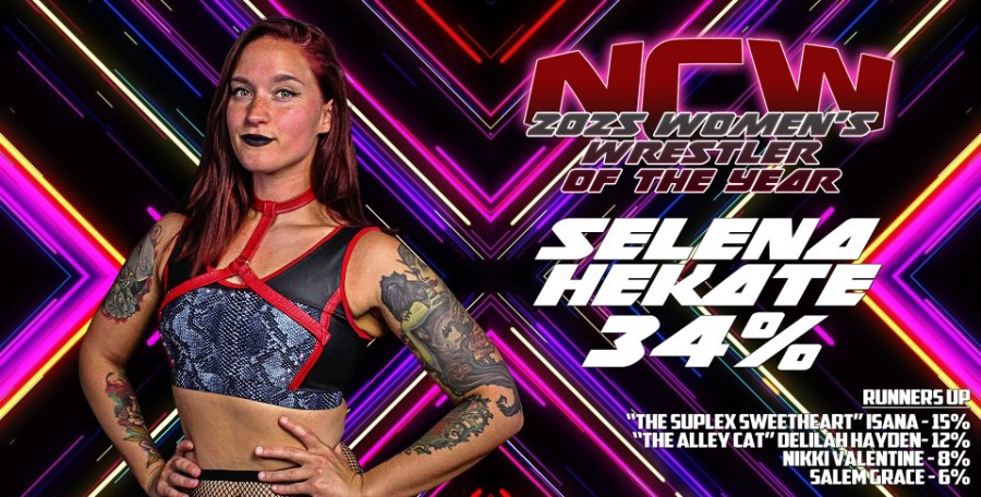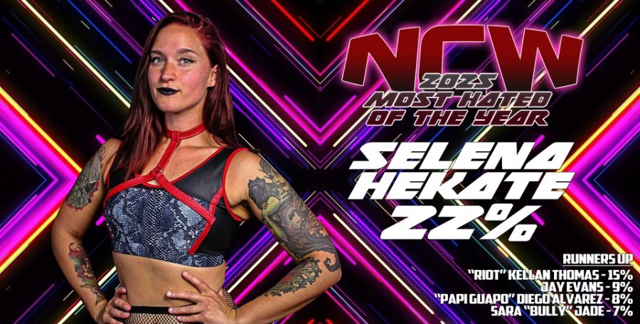 While the fans of NCW obviously respect Selena Hekate enough to be the 2025 Women’s Wrestler of the Year, their hatred for her actions this year have made her easily the 2025 Most Hated Wrestler in NCW with 22% of the vote. Hekate’s controversial actions throughout the year have not only fueled her rivalry with other wrestlers but have also alienated a significant portion of her fan base.