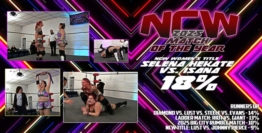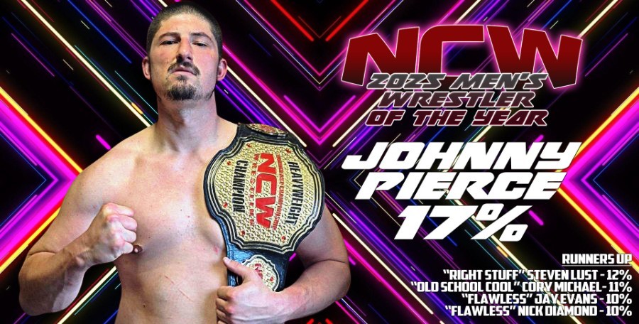 It was a showcase year for breakout stars in NCW, as Nick Diamond’s #1 fan and future rival Jay Evans smashed the votes with 24% to become NCW’s 2025 Breakout Star of the Year. “The Young King” D-Rex took 17% after a stellar back half of 2025, culminating in his shocking upset against Trigga the OG at WrestleFest. D-Rex’s rise has been meteoric, and this accolade confirms his status as a rising star.