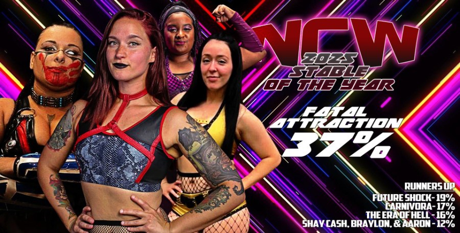 2025 was obviously the year of Selena Hekate in NCW, but would she have been as successful without amassing her own army of support in the vein of Special Attraction? This formidable group brought a Fatal Attraction to NCW in Selena’s quest to become NCW Women’s Champion and hold onto that Championship at any cost. Leveraging the rockstar attitude of Dajae Simone, the bullying tactics employed by Sara “Bully” Jade provided the psychological edge necessary to intimidate their opponents. Sara’s reputation for taking a short cut meant that few dared to cross her or her allies, creating an environment that Selena could exploit. The uncontrollable raw power and unpredictability of “The Wolf Eye” Nashoba Naira further fortified Hekate’s reign. With Nashoba at her side, the competition was always wary. Together, this powerhouse stable found dominance within the NCW women’s division.